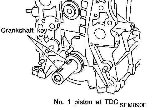 2. Position crankshaft so that No. 1 piston is at TDC and crankshaft key is at 12 o'clock.