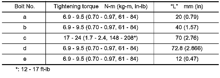 Tighten bolts (1 - 4) to 6.3 to 8.3 Nm (0.64 to 0.85 kg-m, 55.8 to 73.5 inch lbs.).