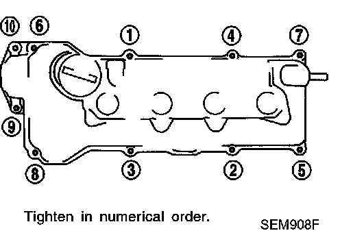 27. Install rocker cover and tighten in numerical order as shown in the figure.