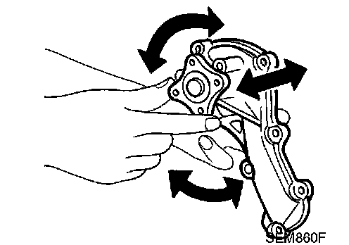 Rotate water pump shaft, replace the water pump as necessary.