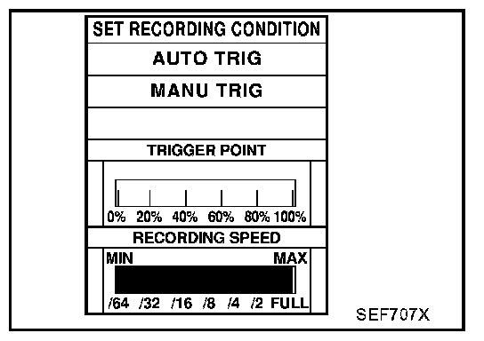 The recording time after the malfunction detection and the recording speed can be changed by "TRIGGER POINT" and "Recording Speed". Refer to CONSULT-II OPERATION MANUAL.