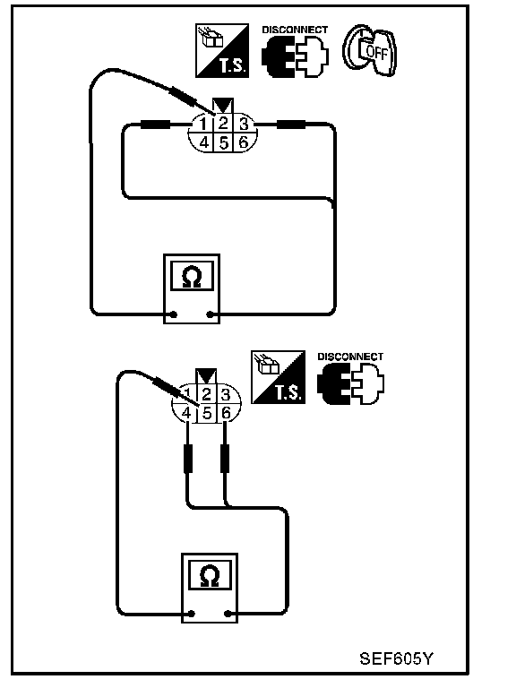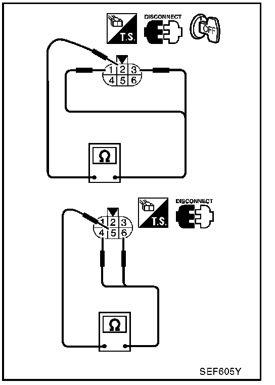 2. Check resistance between the following terminals. terminal 2 and terminals 1, 3 terminal 5 and terminals 4, 6