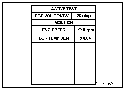 6. Perform "EGR VOL CONT/V" in "ACTIVE TEST" mode with CONSULT-II. Check that EGR volume control valve shaft moves smoothly forward and backward according to the valve opening. If NG, replace the EGR volume control valve.