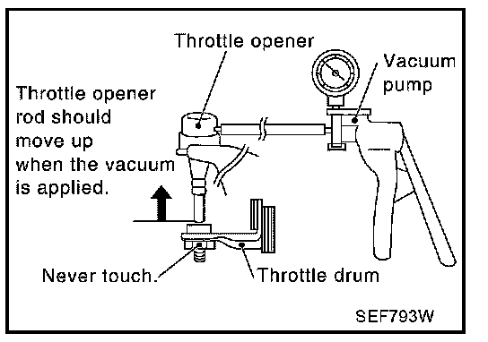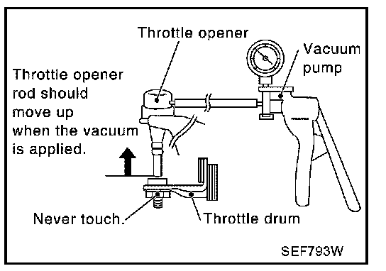 5. Apply vacuum [more than -40.0 kPa (-300 mmHg, -11.81 inHg)] until the throttle drum becomes free from the rod of the throttle opener.