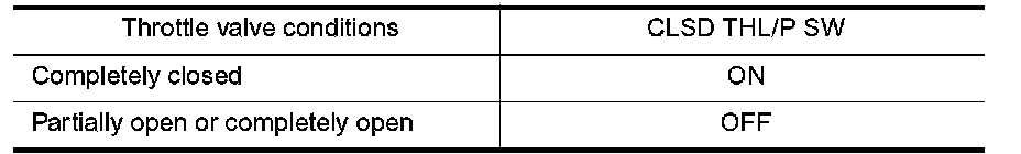 8. Check indication of "CLSD THL/P SW" under the given conditions. Measurement must be made with closed throttle position switch installed in vehicle.