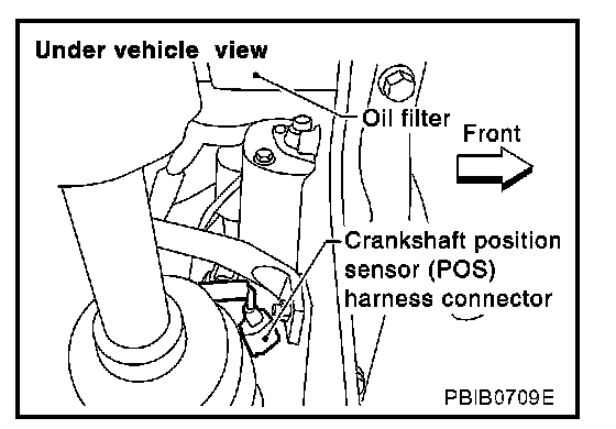 The crankshaft position sensor (POS) is located on the cylinder block rear housing facing the gear teeth (cogs) of the signal plate at the end of the crankshaft. It detects the fluctuation of the engine revolution.