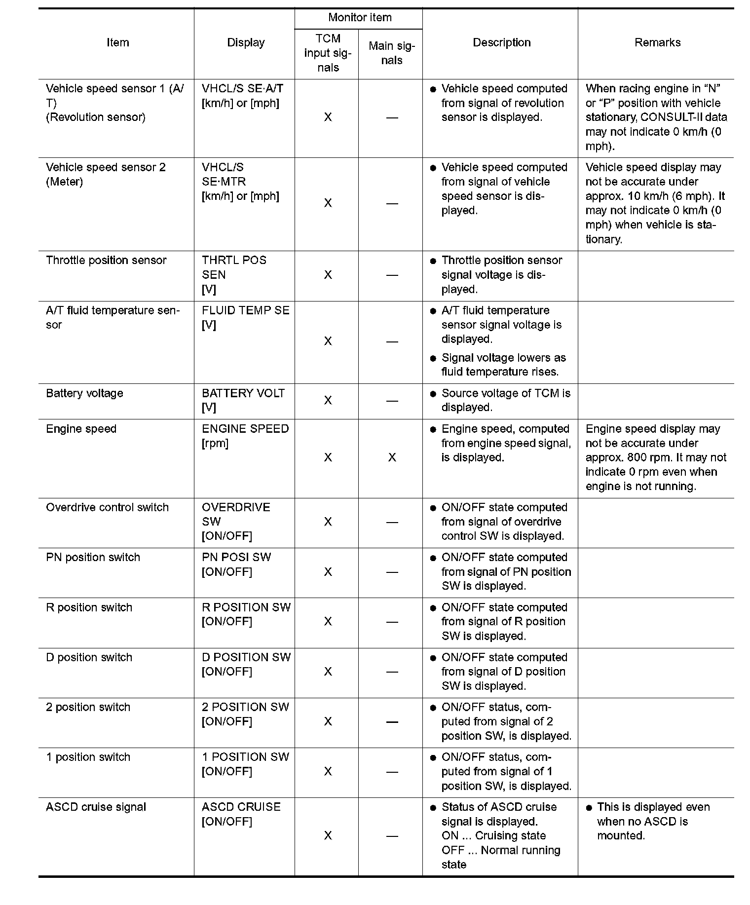 DATA MONITOR MODE (A/T)