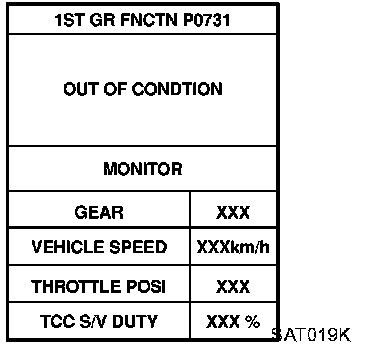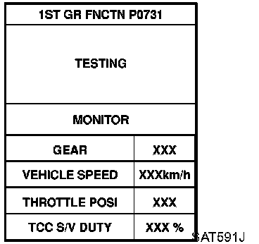 3. Shift solenoid valve "A" or "B" is displayed on CONSULT-II at the start of shifting. Gear position is displayed upon completion of shifting (which is computed by TCM).