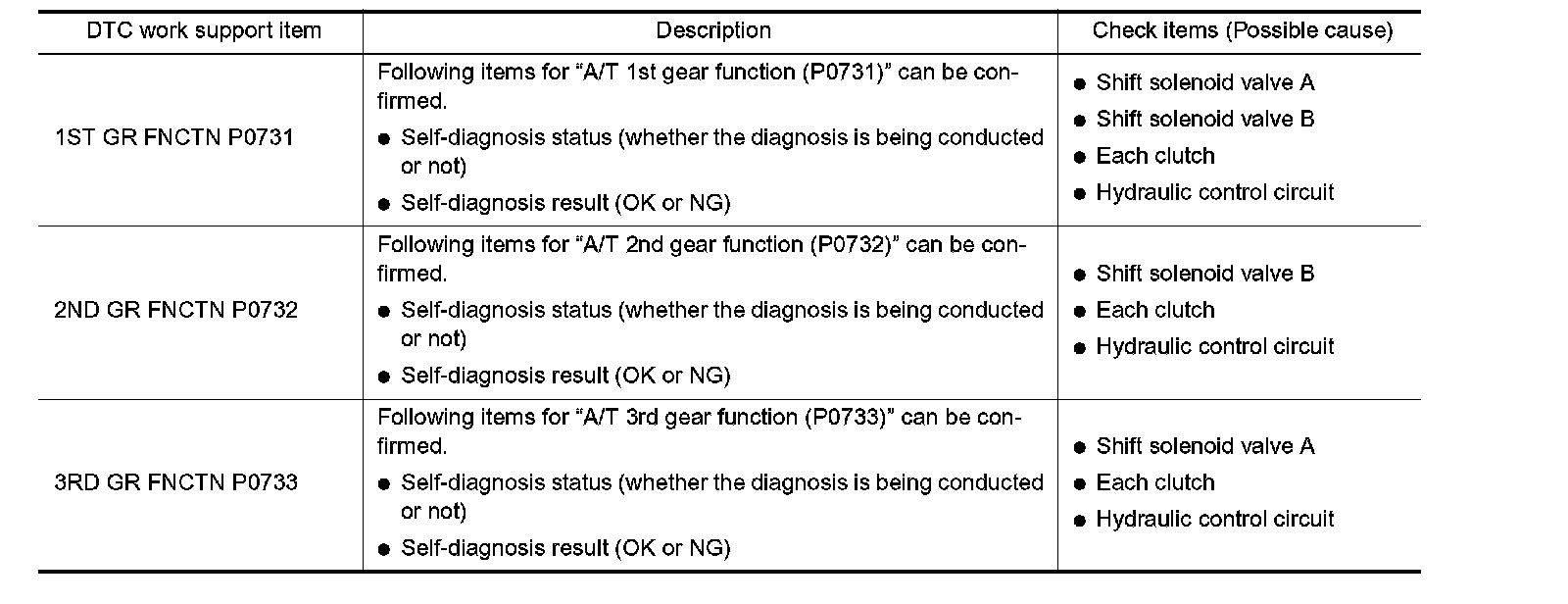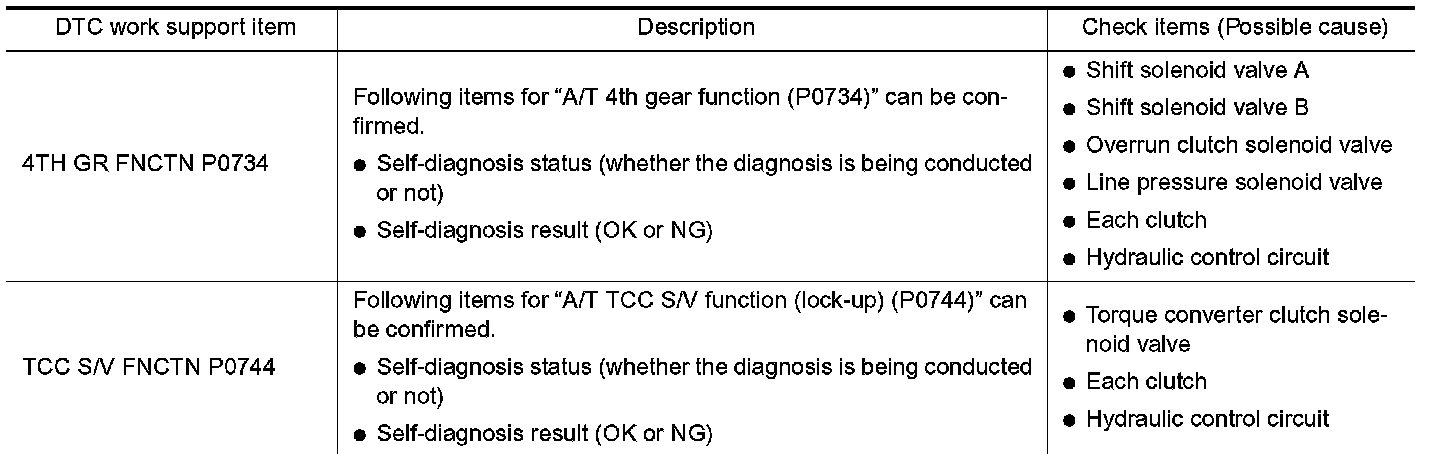 DTC WORK SUPPORT MODE