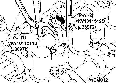 CAUTION: Be careful not to damage cam surface with Tool (1).