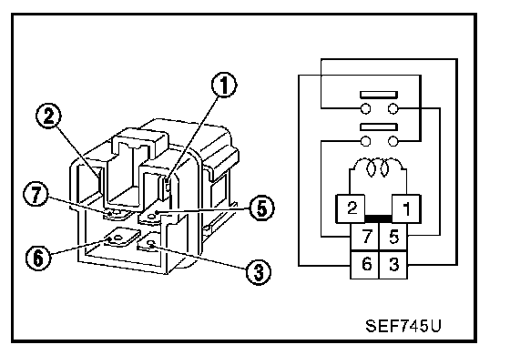 Check continuity between terminals 3 and 5, 6 and 7.