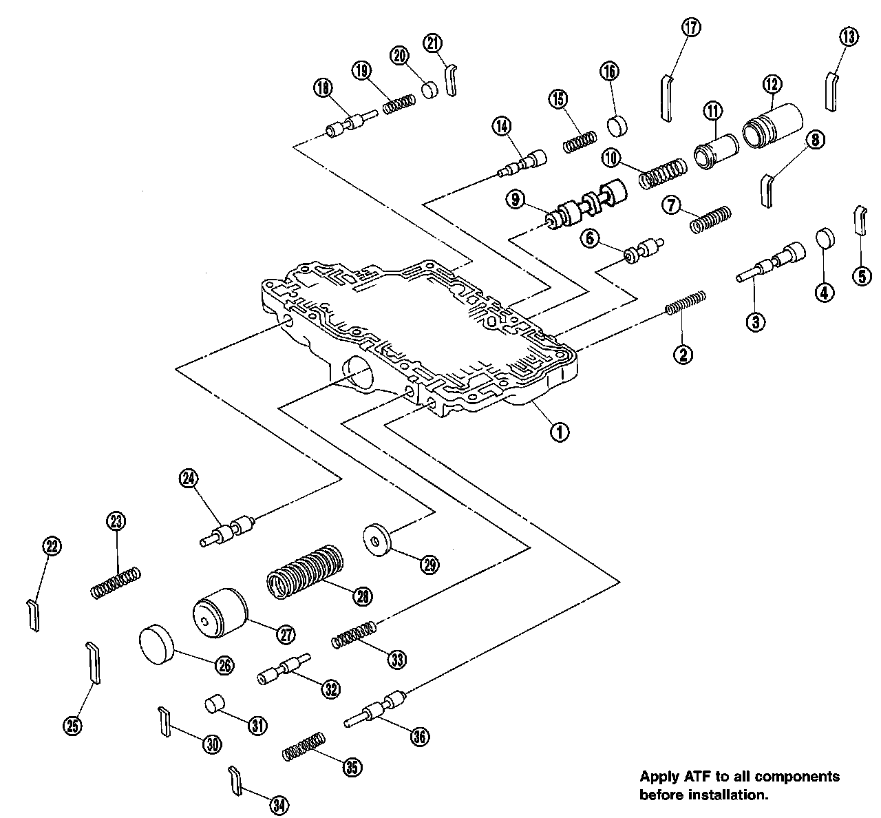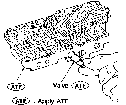 1. Lubricate the control valve body and all valves with ATF. Install control valves by sliding them carefully into their bores.