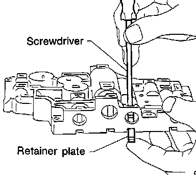 b. Remove retainer plates while holding spring, plugs or sleeves.