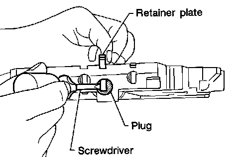 - Install retainer plate while pushing plug or return spring.