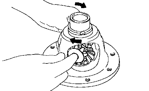 c. If not within specification adjust clearance by changing thickness of side gear thrust washers.