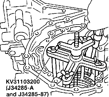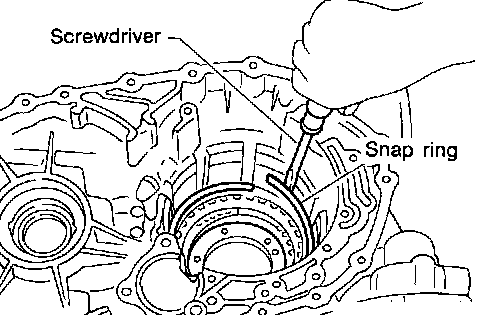 5. Set Tool on spring retainer and remove snap ring while compressing return springs.