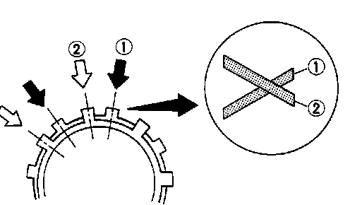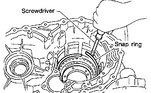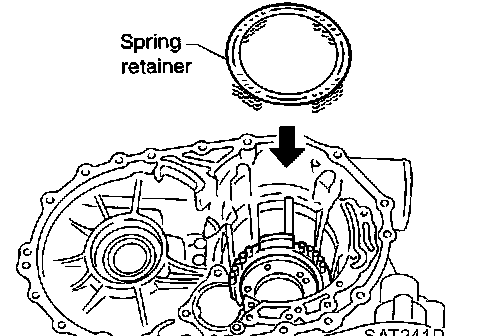 8. Measure clearance between retaining plate and snap ring. If not within allowable limit, select proper retaining plate (front side).