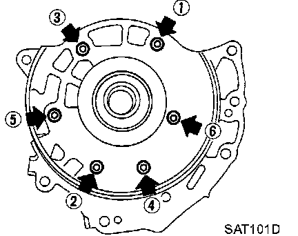 2. Loosen bolts in numerical order and remove oil pump cover.