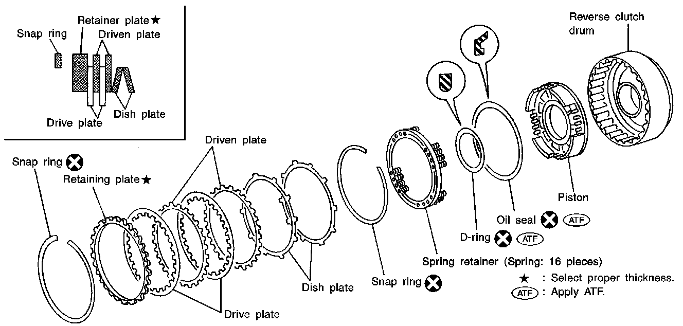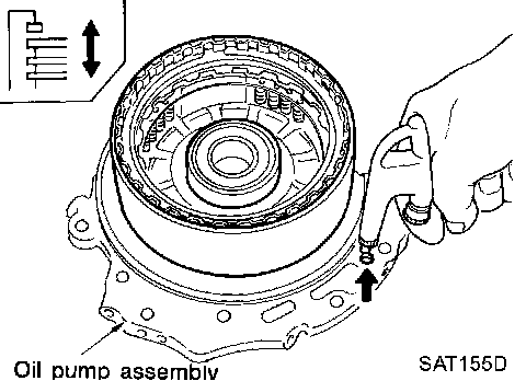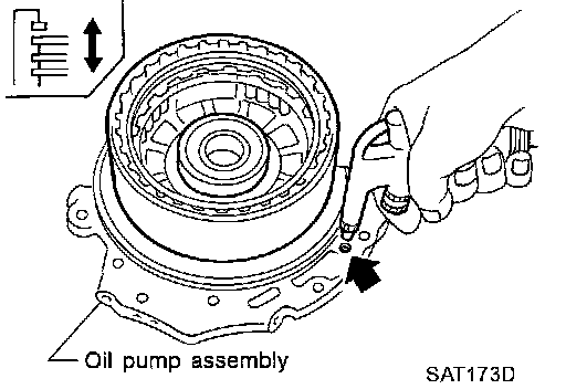a. Install seal ring onto drum support of oil pump cover and install reverse clutch assembly. Apply compressed air to oil hole.