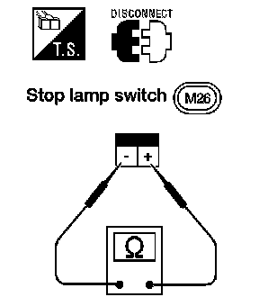 2. Check voltage between stop lamp switch harness connector - M26 terminal + (R/Y) and ground.