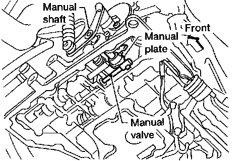 - Set manual shaft in Neutral position, then align manual plate with groove in manual valve.