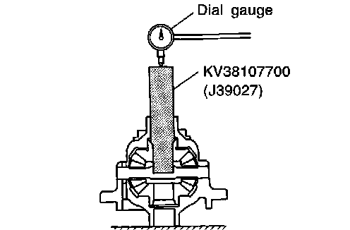 3. Place final drive adapter and dial gauge onto side gear. Move side gear up and down, and measure the clearance using Tool.