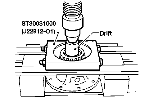 12. Turn differential case upside down, and install another differential side bearing on the other side in the same way using Tool.