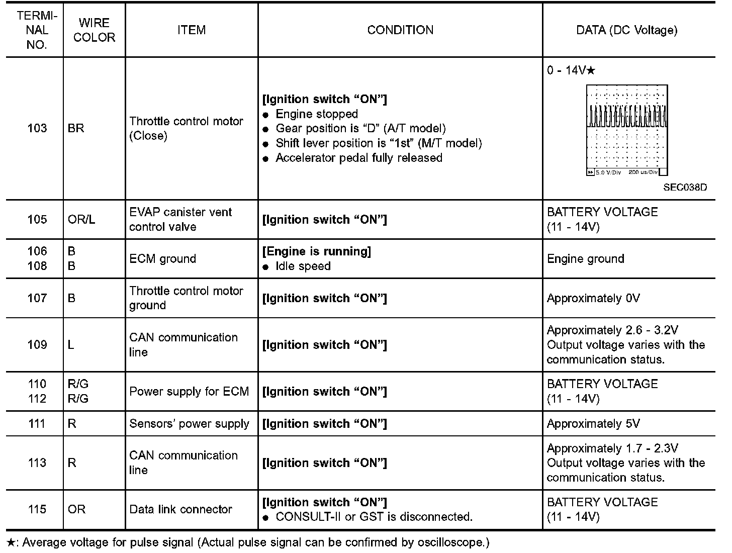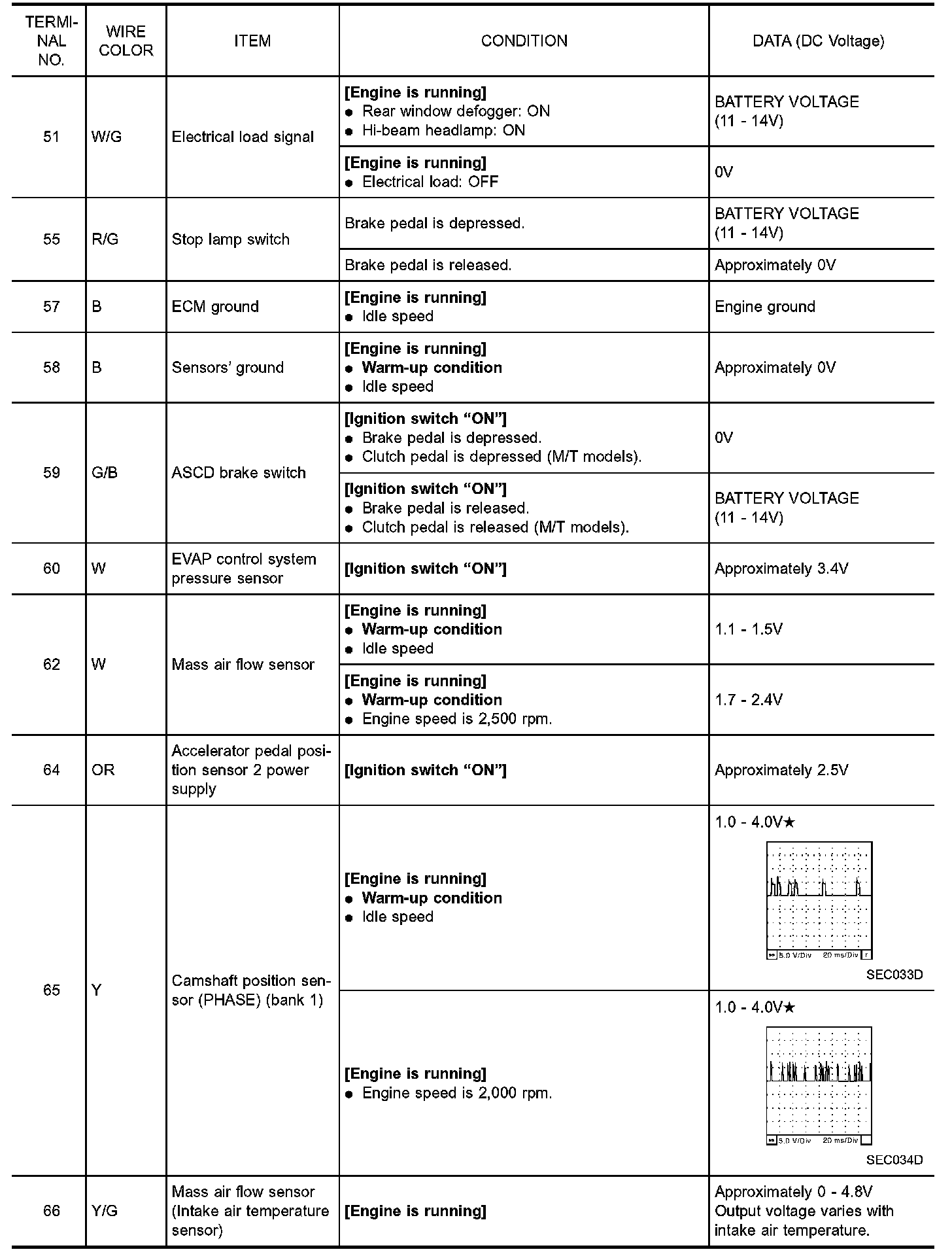 ECM Harness Connector Terminal Layout: