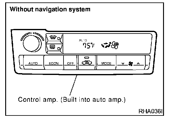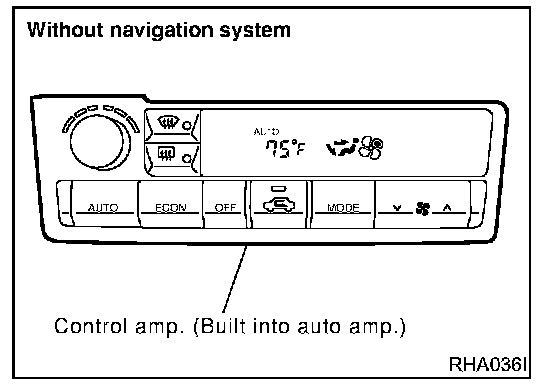 The auto amplifier has a built-in microcomputer which processes information sent from various sensors needed for air conditioner operation. The air mix door motor, mode door motor, intake door motor, blower motor and compressor are then controlled.