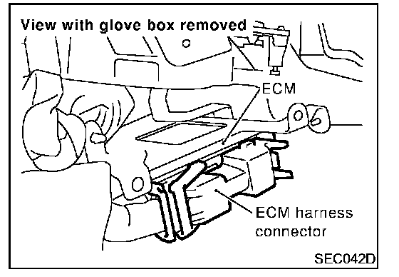 1. ECM is located behind the instrument lower cover. For this inspection, remove instrument lower cover.