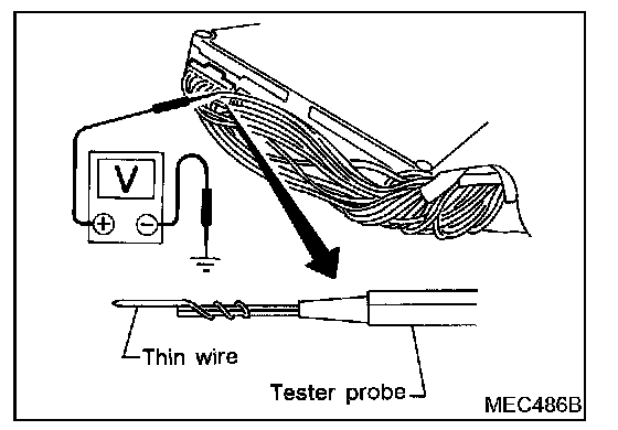 3. Perform all voltage measurements with the connector connected. Extend tester probe as shown to perform tests easily.