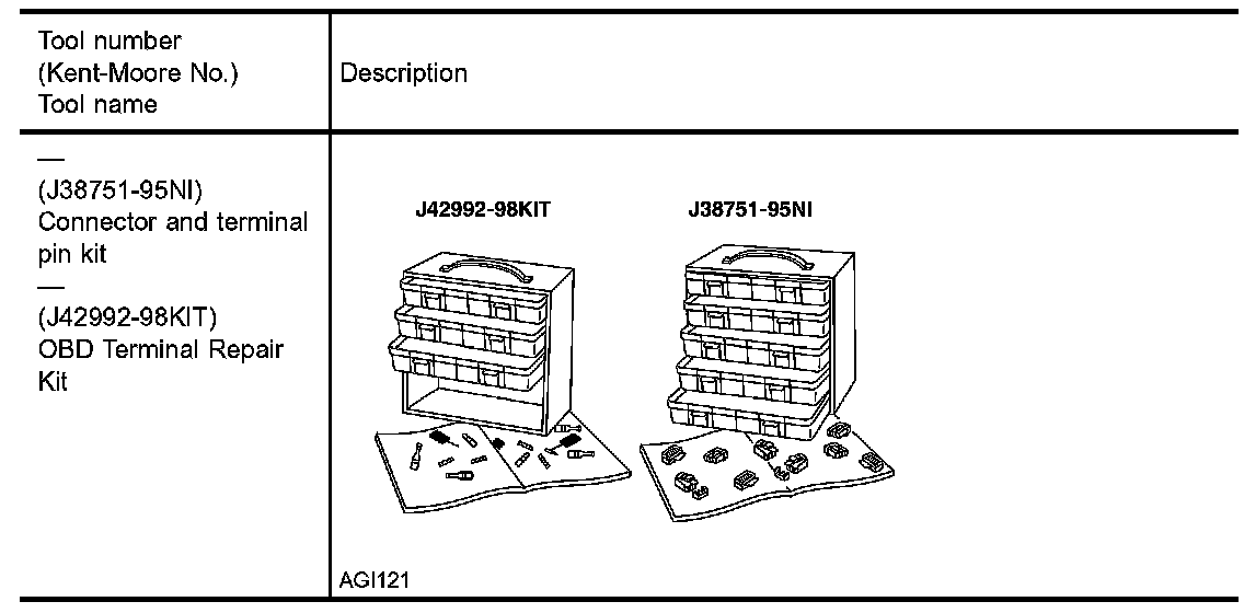 Use the connector and terminal pin kit listed when replacing connectors or terminals.