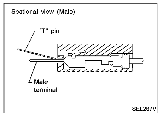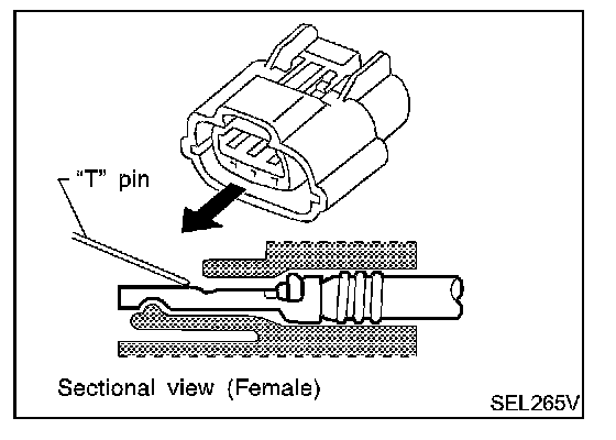 - There is a small notch above each female terminal. Probe each terminal with the "T" pin through the notch.