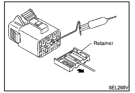 - Some connectors do not have a notch above each terminal. To probe each terminal remove the connector retainer to make contact space for probing.