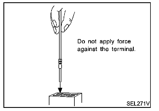 Do not force the male terminal into the female terminal with your hands.