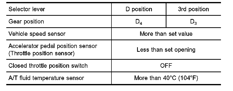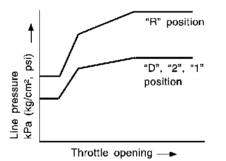 ^ The line pressure is reduced below 60°C (140°F) to prevent shifting shock due to low viscosity of automatic transmission fluid when temperature is low.