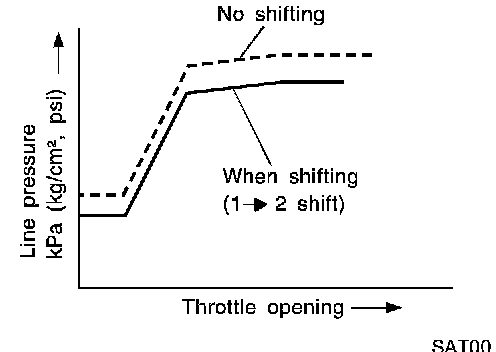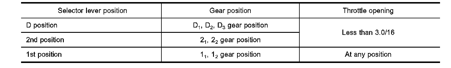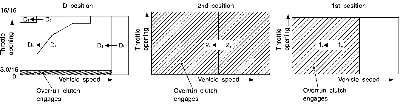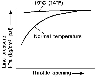 ^ Line pressure is increased to a maximum irrespective of the throttle opening when fluid temperature drops to -10°C (14°F).