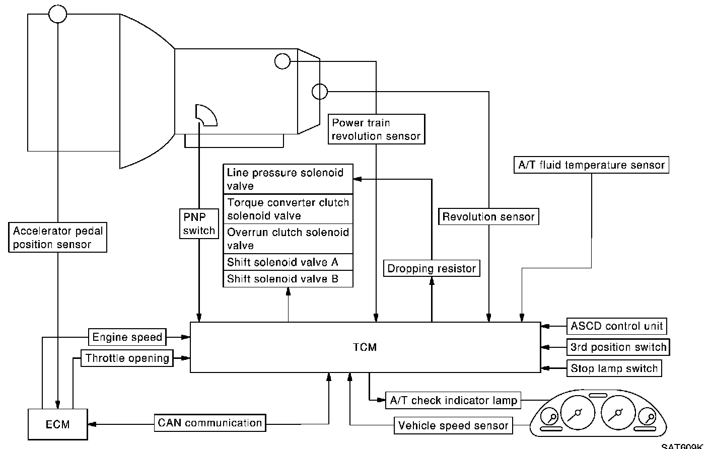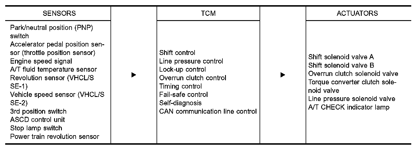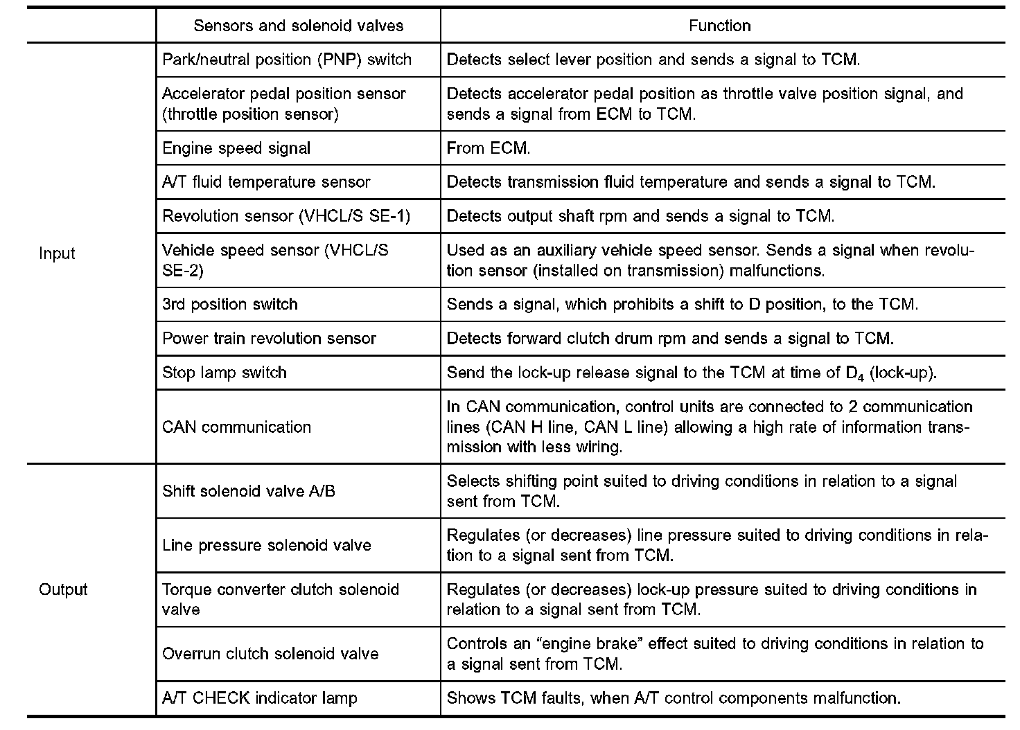 ^ Determine required line pressure, shifting point, lock-up operation, and engine brake operation.