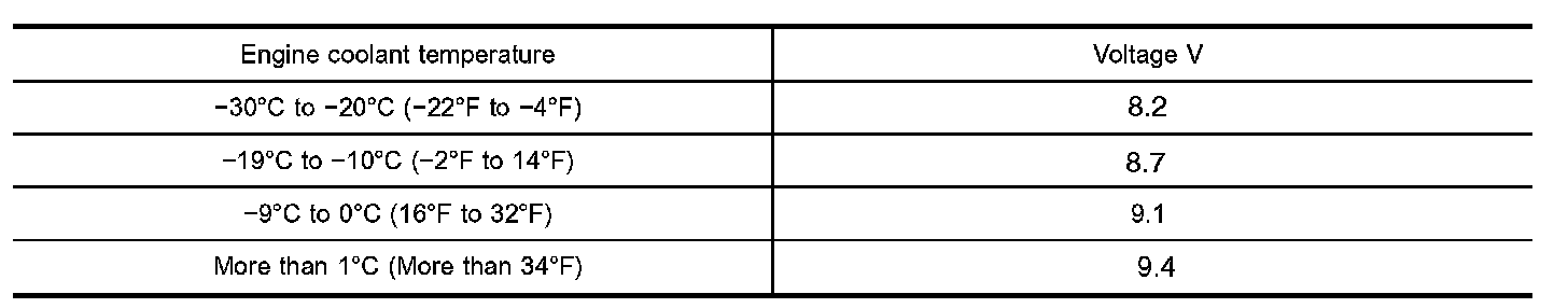 Minimum Specification Of Cranking Voltage Referencing Coolant Temperature: