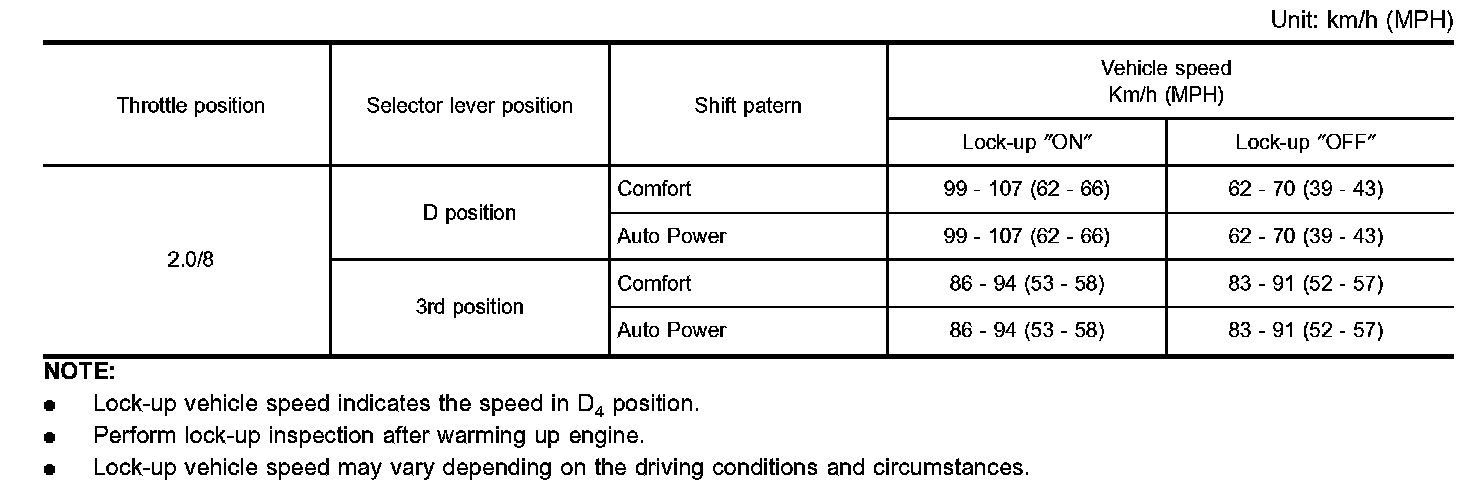 VEHICLE SPEED WHEN PERFORMING AND RELEASING LOCK-UP