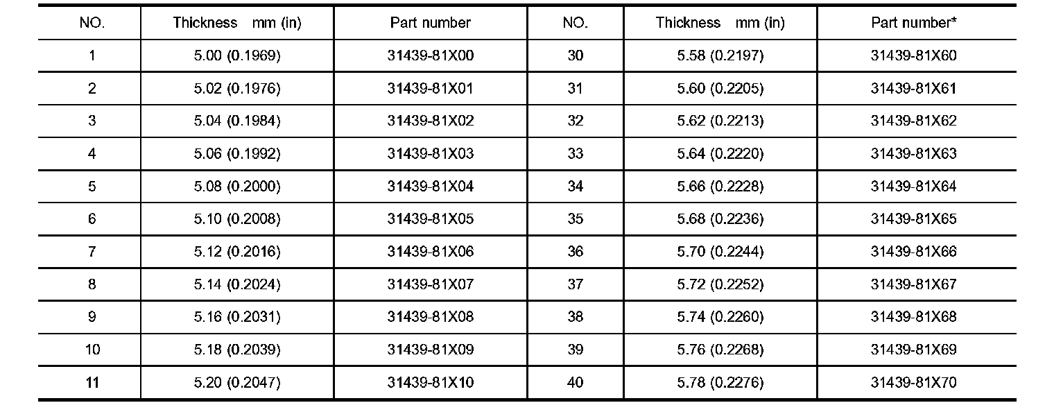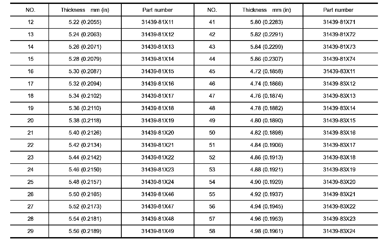 DIFFERENTIAL SIDE BEARING PRELOAD ADJUSTING SHIMS