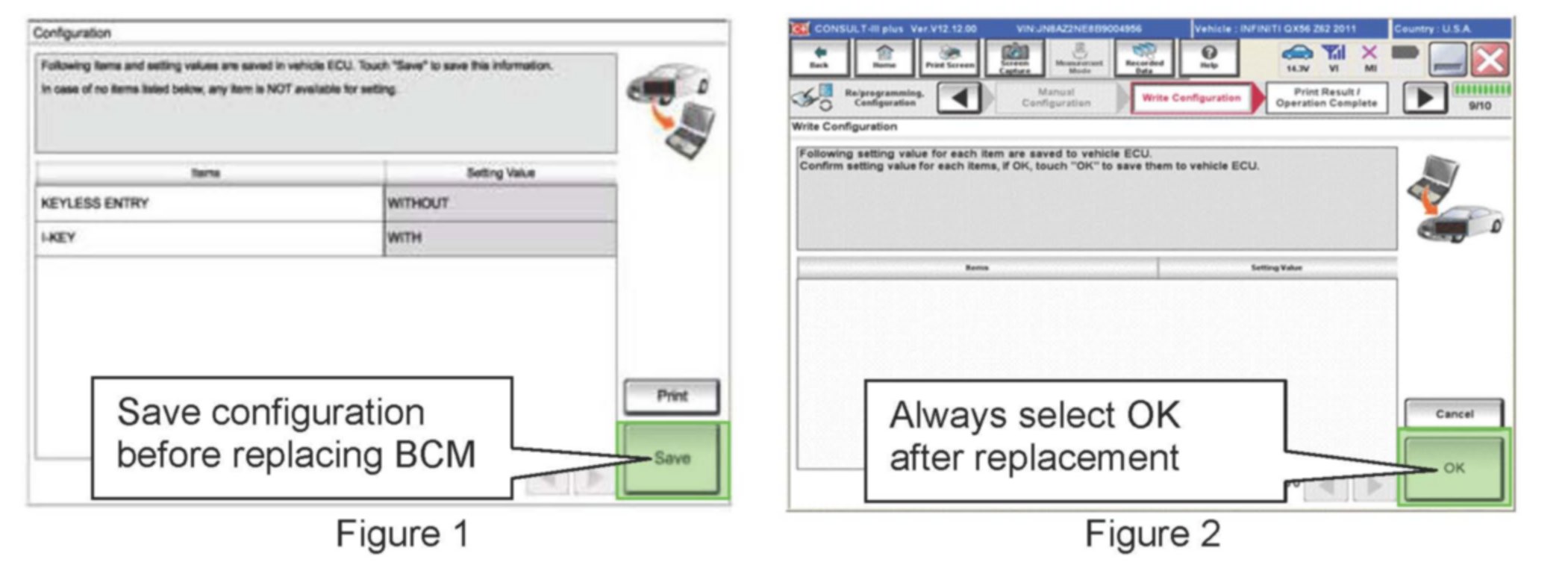 After replacement "Write Configuration" MUST then be performed and OK selected, even if there are not any options listed. (See Figure 2)