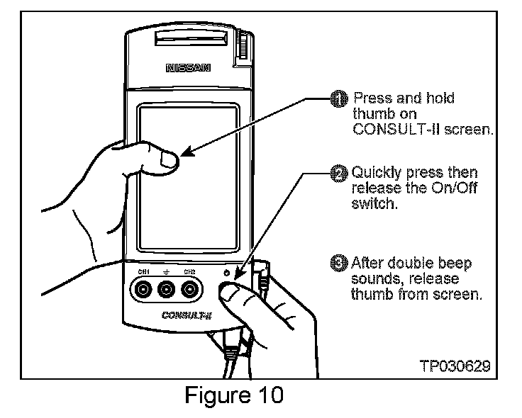 8. Turn "ON" CONSULT-II as shown in Figure 10.