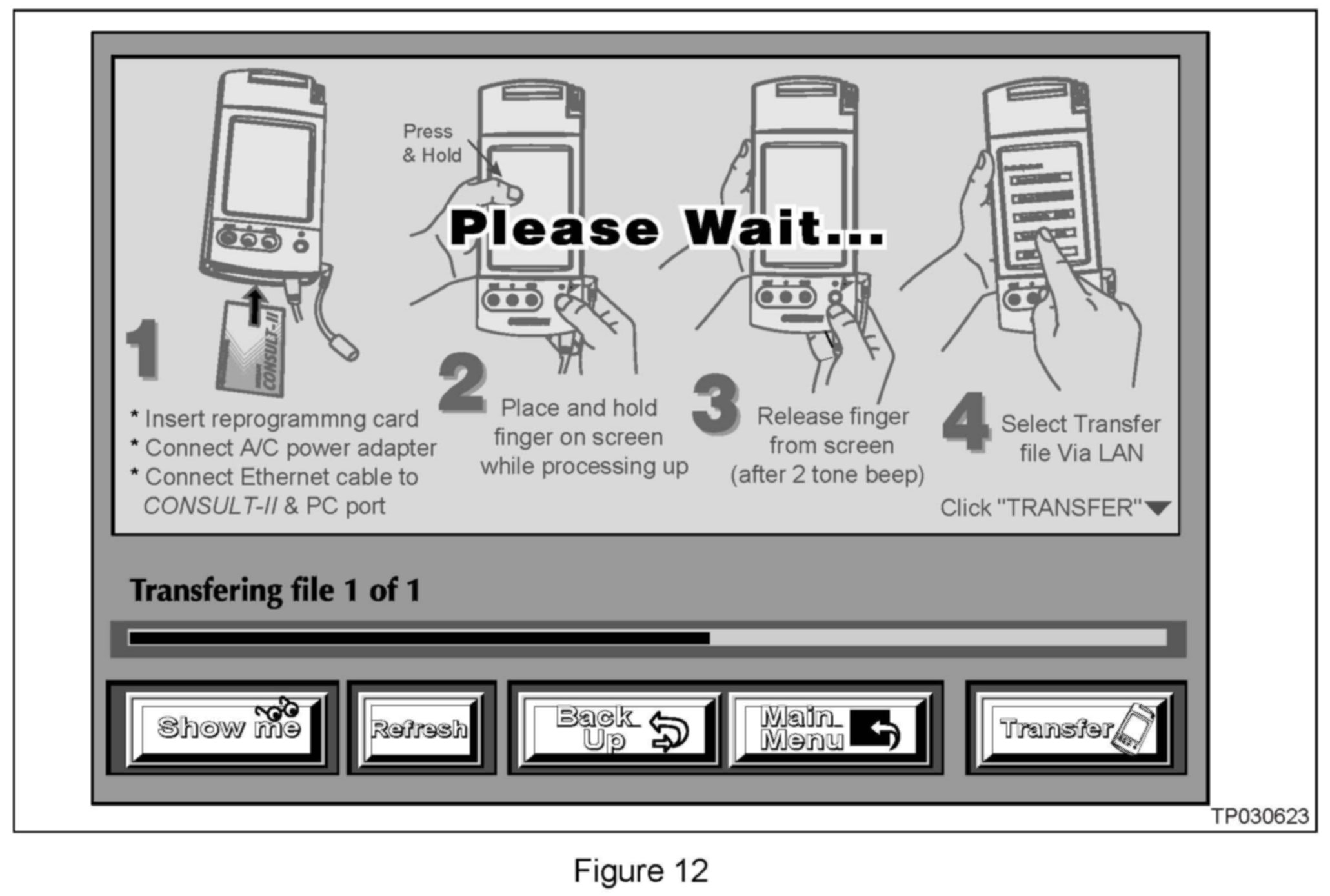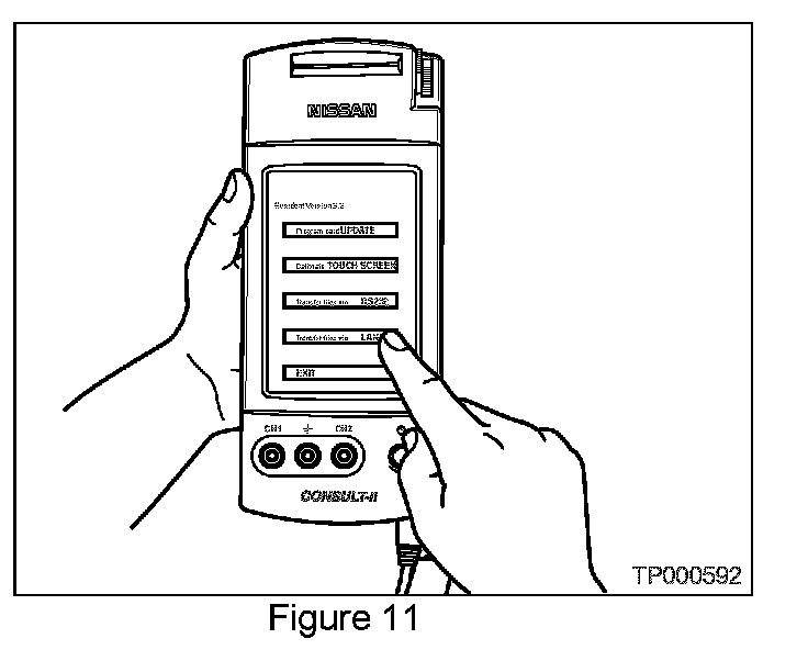 If you accidentally choose a menu option other than "Transfer Files via LAN" turn CONSULT-II "OFF", and then back "ON" as shown in Figure 10 above.