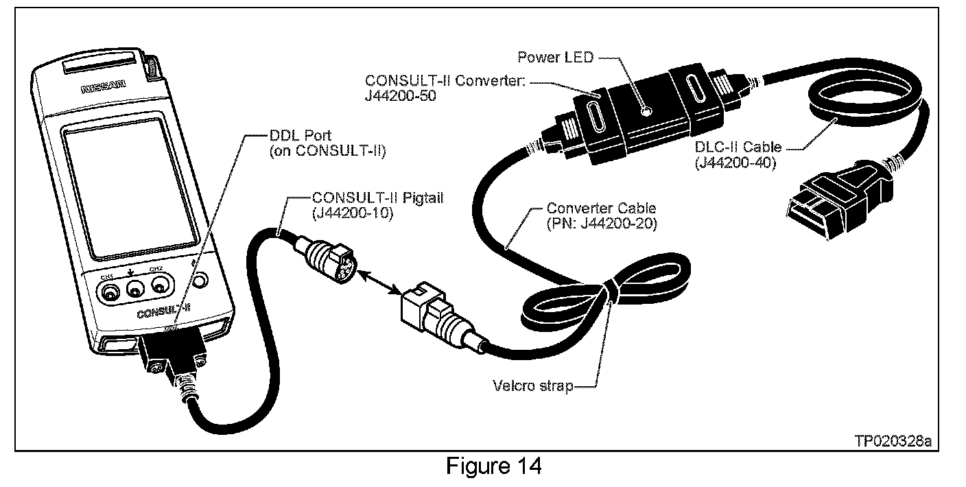 d. The CONSULT-II Converter (J44200-50 / black box) is not working correctly (see Figure 14).