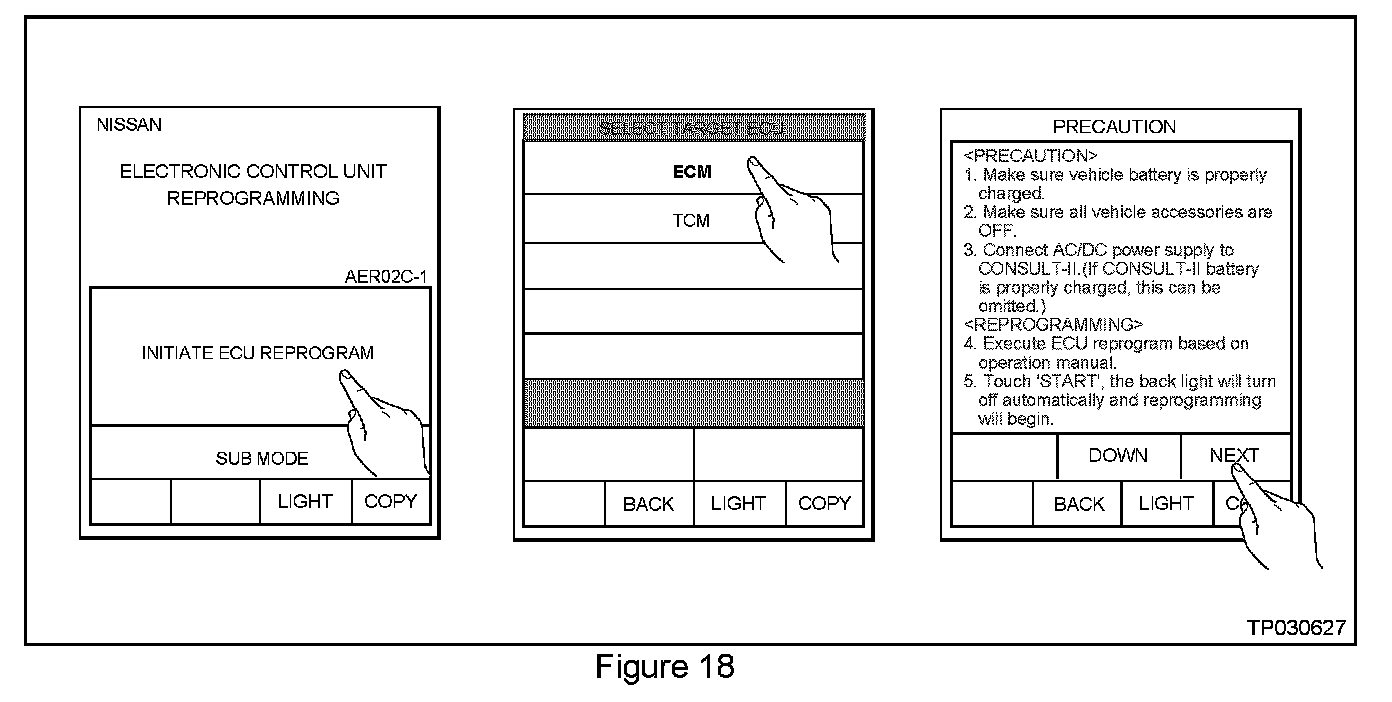 ^ Proper CONSULT-II power supply during reprogramming-very important if the CONSULT-II battery is low.