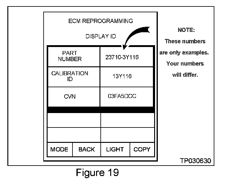 21. Press [CHECK ECM P/N] to "confirm" (take note of) the current ECM part number (see Figure 19).