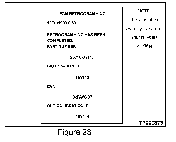 27. When the reprogramming is complete, CONSULT-II will "beep", turn the screen backlight back "ON" and automatically print out a report (see Figure 23).