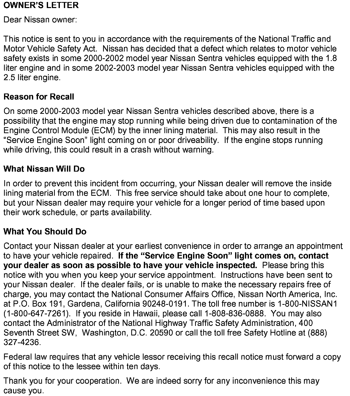 Recall - ECM Case Modification