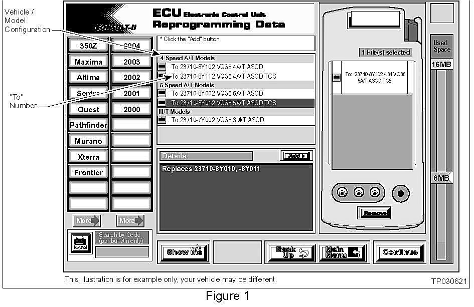 2. In ASIST, select [CONSULT Utilities] >>> [ECM/TCM Data]. Then choose Model and Model Year (see Figure 1).